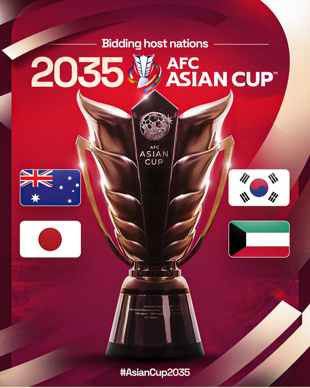 کشورهای استرالیا، ژاپن، کرهجنوبی و کویت برای میزبانی از جام ملتهای آسیا 2035 خیز برداشتهاند و درخواست خود را به کنفدراسیون فوتبال آسیا ارائه کردهاند که میزبان این دوره از رقابتها هم قرار است در کنگره آتی «AFC» اعلام شود. آنچه پُر واضح است اینکه طی یکدهه آتی هم خبری از میزبانی ایران از رویدادی مثل جام ملتهای آسیا نخواهد بود تا بیش از پیش ناکامی مسئولان فدراسیون و البته مدیران ورزشی ایران در مسیر میزبانی از یک رویداد مهم در سطح قاره کهن به چشم آید.